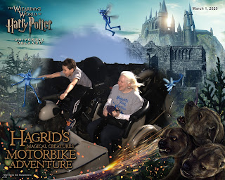 Not gonna lie, we waited a long, long time to ride Hagrid's Motorbike ride. After waiting over an hour and a half, the line came to a standstill and finally we heard the announcement that the ride was broken. Then, it became a debate of how long to wait for it to be repaired before getting out of line. When we got in line it said it was a nearly 3 hour wait, so we opted to give it some time. As more and more people got out of line we crept along. Charlie became very frustrated with the wait and required a piggy back ride for a while, but really both kids hung in there. I saw teenagers complain more than they did, so proud parent moment there. Finally, they got it working and we only had a short wait to get on.